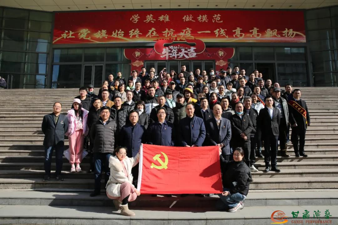 為深入學(xué)習(xí)貫徹習(xí)近平總書(shū)記在全國(guó)抗擊新冠肺炎疫情表彰大會(huì)上的重要講話精神,積極開(kāi)展“學(xué)習(xí)身邊榜樣”活動(dòng),大力弘揚(yáng)抗疫精神。由甘肅演藝集團(tuán)機(jī)關(guān)黨支部牽頭于2021年2月2日下午在黃河劇院開(kāi)展了“學(xué)英雄·做模范—讓黨旗始終在抗疫一線高高飄揚(yáng)”主題黨日活動(dòng)。主題黨日活動(dòng)由機(jī)關(guān)黨支部副書(shū)記胡慶昭主持,集團(tuán)機(jī)關(guān)黨支部、敦煌藝術(shù)團(tuán)黨總支、話劇院黨總支、秦腔藝術(shù)劇院黨總支、演出公司黨支部、舞美中心黨支部共100余人參加。