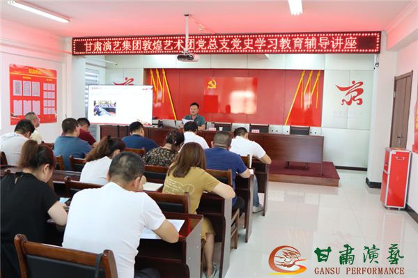 按照甘肅演藝集團(tuán)黨委安排部署,為深入推進(jìn)黨史學(xué)習(xí)教育活動,2021年7月16日下午,甘肅演藝集團(tuán)黨委副書記、監(jiān)事會主席、藝術(shù)總監(jiān)龍富國赴敦煌藝術(shù)團(tuán),為敦煌藝術(shù)團(tuán)黨總支全體黨員、中層干部講授黨史學(xué)習(xí)教育專題黨課。黨課由敦煌藝術(shù)團(tuán)黨總支書記、團(tuán)長吳雪林主持,全體黨員、中層干部參加黨課學(xué)習(xí)。