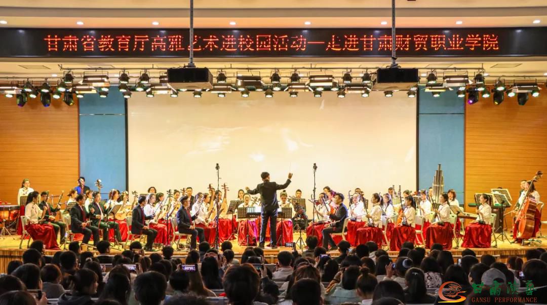 為將高雅藝術(shù)融入校園文化建設(shè),繁榮學(xué)校校園文化,提升師生藝術(shù)素養(yǎng),11月24日下午,2020年“甘肅省教育廳高雅藝術(shù)進校園”活動來到鐘靈毓秀的甘肅財貿(mào)職業(yè)學(xué)院,甘肅演藝集團歌舞劇院民族交響樂團的演奏家們用一臺精彩絕倫的中外影視經(jīng)典民族交響音樂會《歲月留聲》帶領(lǐng)全體師生共同感受民樂魅力,重溫經(jīng)典旋律。本次活動由甘肅省教育廳主辦,甘肅演藝集團承辦。