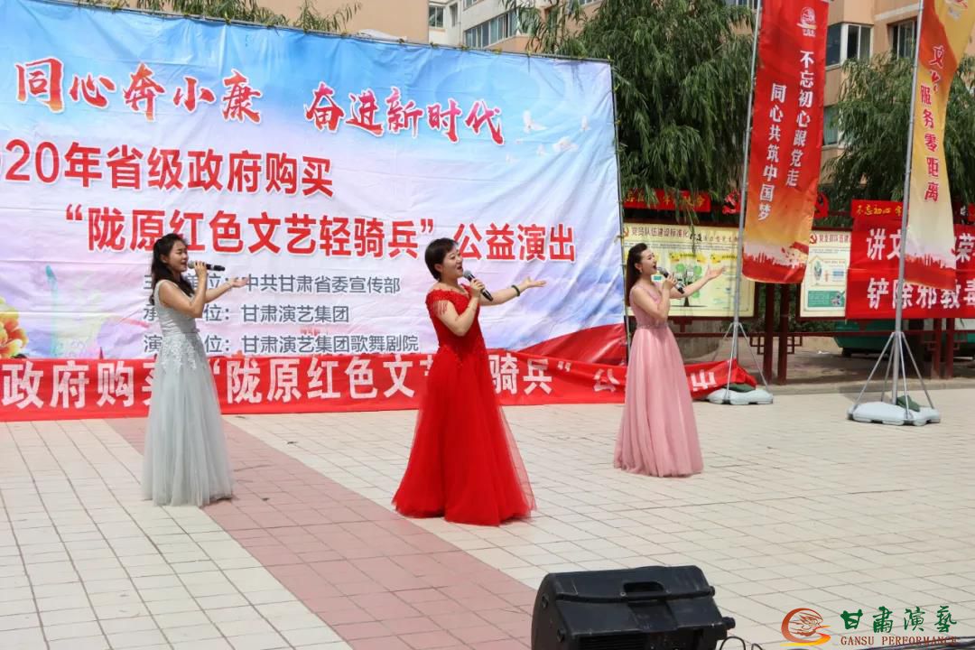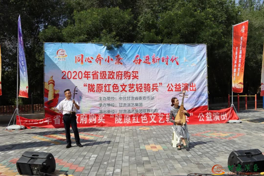 甘肅演藝集團(tuán)歌舞劇院“隴原紅色文藝輕騎兵” 小分隊從六月開始,歷時一個半月,途徑隴南、甘南、臨夏、白銀四個地州市,共演出53場,他們克服感冒、腰病、腹瀉、勞累等因素,每到一鄉(xiāng)鎮(zhèn)或社區(qū),所有男女隊員馬上開始集體卸車、接線、安裝音響設(shè)備,拉上橫幅,頭頂炎炎烈日下開始演出,不僅為廣大父老鄉(xiāng)親送去了歡樂,也讓助力脫貧攻堅,全面建成小康社會的目標(biāo)家喻戶曉、落地生根。雖然舞臺簡單,但演員們的準(zhǔn)備卻很充分,全體隊員們以文藝工作者的使命擔(dān)當(dāng),踐行著新時代烏蘭牧騎精神。我們堅信,甘肅演藝集團(tuán)歌舞劇院全體演職人員一定會憑借著文藝工作者卓越的藝術(shù)素養(yǎng)和敬業(yè)精神,用歌聲、琴聲和舞姿去謳歌偉大的祖國,與基層群眾一起“同心奔小康,奮進(jìn)新時代”!