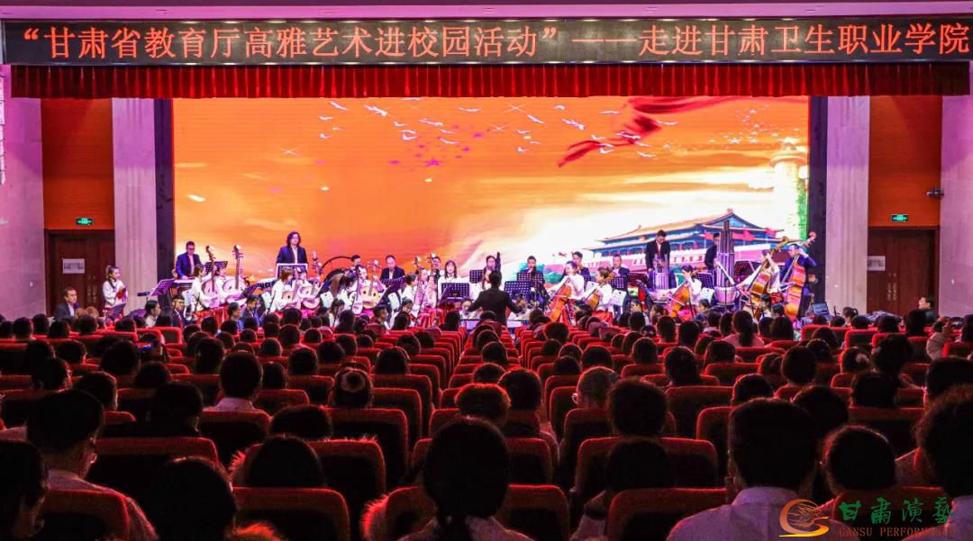 11月27日下午,甘肅演藝集團(tuán)歌舞劇院民族交響樂團(tuán)的演奏家們用一臺(tái)高水準(zhǔn)的中外影視經(jīng)典民族交響音樂會(huì)《歲月留聲》帶領(lǐng)甘肅衛(wèi)生職業(yè)學(xué)院的師生走進(jìn)民樂,回味經(jīng)典。整場(chǎng)音樂會(huì)分上下兩個(gè)篇章,上篇《中國(guó)影視經(jīng)典音樂》、下篇《國(guó)外影視經(jīng)典音樂》,演出由甘肅演藝集團(tuán)歌舞劇院青年指揮家張釗執(zhí)棒。在演奏家們忘我的演奏下,一首首耳熟能詳?shù)挠耙暯?jīng)典曲目仿佛打開了時(shí)光之門,讓師生們?nèi)绨V如醉,意猶未盡,不時(shí)爆發(fā)的掌聲更是表達(dá)著師生對(duì)國(guó)樂的熱愛。音樂會(huì)通過對(duì)經(jīng)典曲目的創(chuàng)造性加工與創(chuàng)新,使中華優(yōu)秀傳統(tǒng)文化歷久彌新。