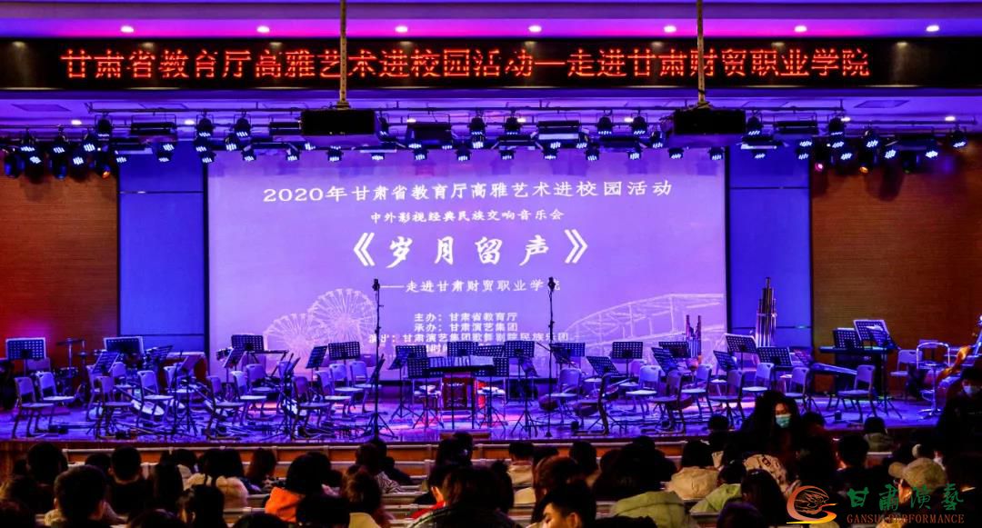為將高雅藝術(shù)融入校園文化建設(shè),繁榮學(xué)校校園文化,提升師生藝術(shù)素養(yǎng),11月24日下午,2020年“甘肅省教育廳高雅藝術(shù)進(jìn)校園”活動(dòng)來(lái)到鐘靈毓秀的甘肅財(cái)貿(mào)職業(yè)學(xué)院,甘肅演藝集團(tuán)歌舞劇院民族交響樂(lè)團(tuán)的演奏家們用一臺(tái)精彩絕倫的中外影視經(jīng)典民族交響音樂(lè)會(huì)《歲月留聲》帶領(lǐng)全體師生共同感受民樂(lè)魅力,重溫經(jīng)典旋律。本次活動(dòng)由甘肅省教育廳主辦,甘肅演藝集團(tuán)承辦。