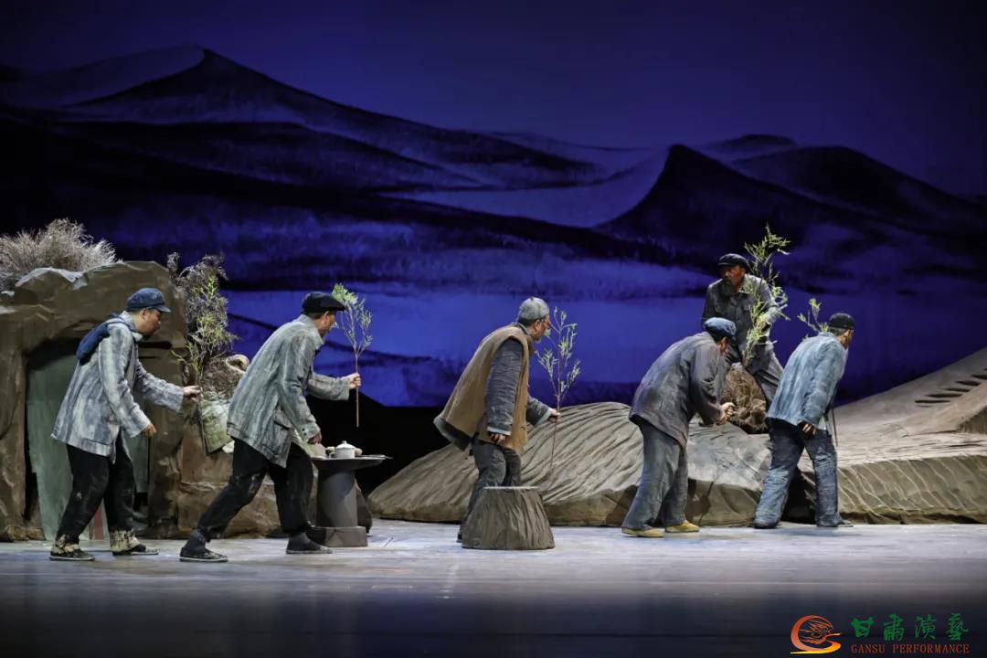 七場話劇《八步沙》以當(dāng)代愚公——八步沙六老漢三代人先進(jìn)群體治沙造林的真實(shí)故事為素材,別具匠心地從自然、歷史、人生的三項(xiàng)維度,緊密圍繞“八步沙”第一代人的治沙經(jīng)歷,凸現(xiàn)六老漢種樹治沙艱苦奮斗拼搏歷程,以及在勞作苦斗過程中苦辣酸甜、喜怒哀樂的人生況味,真切剖視六老漢質(zhì)樸堅(jiān)韌的當(dāng)代愚公的風(fēng)骨與情懷。全劇從“沙逼人退”到“人進(jìn)沙退”的感人故事,在新時(shí)代現(xiàn)實(shí)與歷史的交織與關(guān)照中,集中、堅(jiān)實(shí)、厚重、生動地表現(xiàn)了六老漢遭遇八步沙,拼搏求生,創(chuàng)造幸福的奮斗人生,追尋探究當(dāng)時(shí)代楷模、生態(tài)文明踐行者——六老漢人生價(jià)值的真諦,反映了中國農(nóng)民從求溫飽、到謀幸福,直至樹立生態(tài)觀念的成長歷程。