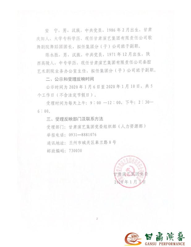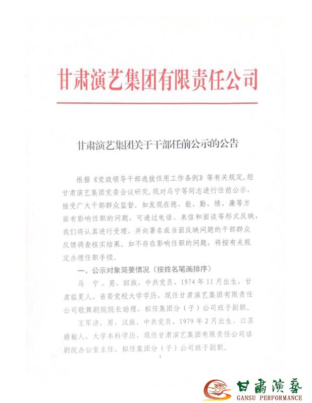 .甘肅演藝集團(tuán)關(guān)于干部任前公示的公告