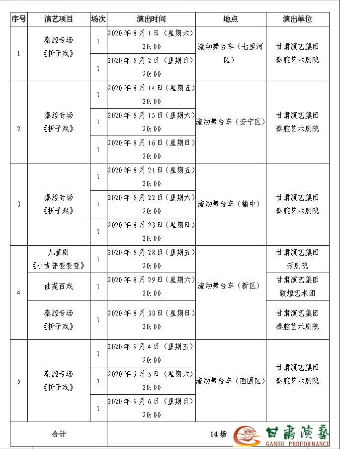 本次藝術(shù)節(jié)從7月31日晚開始,到9月13日結(jié)束,歷時45天,分為主場館文化廣場舞臺演藝、分劇場惠民演出、流動舞臺車精品劇目巡回展演、蘭州隍廟百姓戲臺演出等四個板塊。