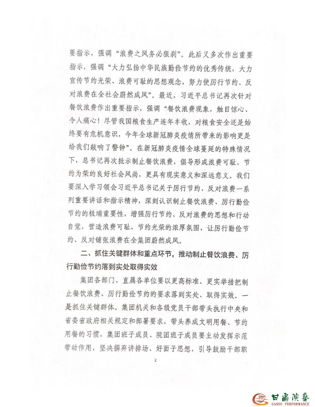 甘肅演藝集團(tuán)關(guān)于開展制止餐飲浪費(fèi)行為工作的通知