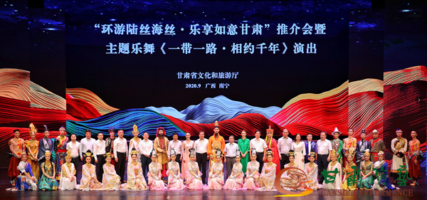 交響絲路恢弘樂舞激蕩八桂大地,如意甘肅絕美風(fēng)情承載千年溢彩流光。9月28日晚,廣西文化藝術(shù)中心嘉賓云集,掌聲雷動,一場唯美大氣的主題推介和藝術(shù)盛宴直抵人心。由甘肅、廣西、重慶、四川、新疆等省區(qū)市文旅部門共同組織的“聯(lián)通陸海絲·助推雙循環(huán)”——甘肅文旅“環(huán)西部火車游”主題推廣營銷系列活動之“環(huán)游陸絲海絲·樂享如意甘肅”推介會暨主題樂舞《一帶一路·相約千年》演出在此舉行。