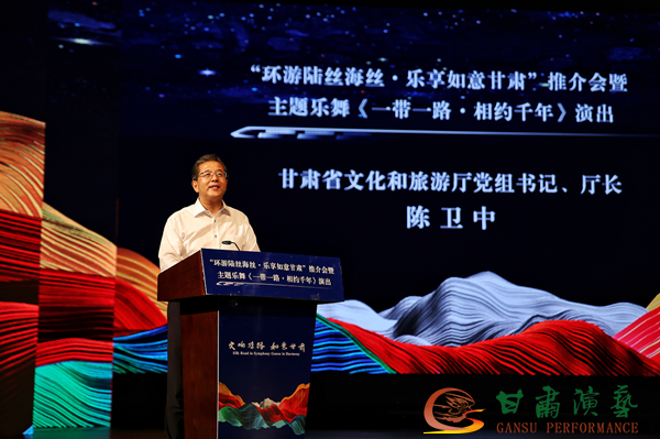 陳衛(wèi)中在致辭中指出,甘肅與廣西、重慶、四川等兄弟省份同屬“一帶一路”和陸海新通道建設(shè)的重要節(jié)點。繼甘肅文旅“環(huán)西部火車游”旅游專列“1+5”跨省推廣營銷活動后,我們乘勢而上深入廣西等地開展“聯(lián)合打造環(huán)西部火車游”品牌交流座談、隴桂文旅合作簽約和考察學(xué)習(xí)、主題推介演出等系列活動,就是要以“環(huán)西部火車游”等跨區(qū)域王牌旅游產(chǎn)品為紐帶拓展合作領(lǐng)域,進一步聯(lián)通陸絲海絲大通道,合力助推經(jīng)濟“雙循環(huán)”。陳衛(wèi)中講到,我們秉承“絲路精神”以舞臺藝術(shù)精品為媒介,面向八桂大地父老鄉(xiāng)親帶來文藝盛宴,旨在促進文化交流互鑒,推進民心相通,誠摯邀請各界朋友沿著張騫“鑿空之旅”、鄭和“揚帆出?!钡膫ゴ笞阚E,乘坐“環(huán)西部火車游”旅游專列穿越大半個中國到甘肅到邊疆,一起相約奏響海絲陸絲牽手大合唱的輝煌樂章。