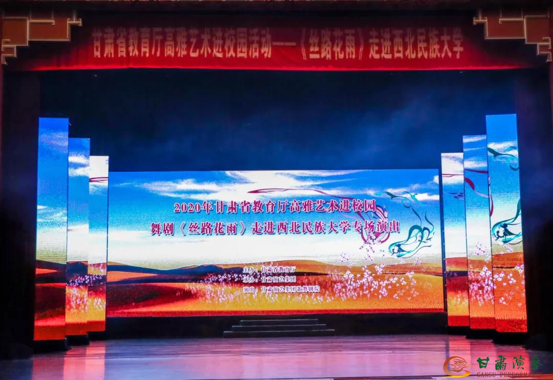 11月21日,由甘肅省教育廳主辦,甘肅演藝集團承辦2020年“甘肅省教育廳高雅藝術進校園”活動——中國經(jīng)典舞劇《絲路花雨》來到了西北民族大學,甘肅演藝集團歌舞劇院的演員們帶領現(xiàn)場師生走進傳統(tǒng)經(jīng)典,品味多彩絲路。