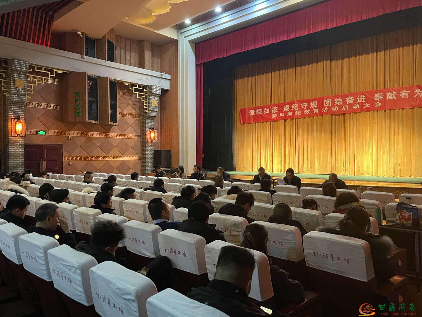 2021年1月25日上午,甘肅演藝集團(tuán)秦腔藝術(shù)劇院在77·演藝工場(chǎng)召開(kāi)了“愛(ài)院如家、遵紀(jì)守規(guī)、團(tuán)結(jié)奮進(jìn)、奉獻(xiàn)有為”整風(fēng)肅紀(jì)教育活動(dòng)啟動(dòng)大會(huì)。集團(tuán)黨委委員、副總經(jīng)理王衛(wèi)平、集團(tuán)黨委委員、紀(jì)委書(shū)記張正權(quán)、集團(tuán)機(jī)關(guān)黨支部書(shū)記、紀(jì)檢監(jiān)察辦公室主任強(qiáng)生愛(ài)出席了會(huì)議。
