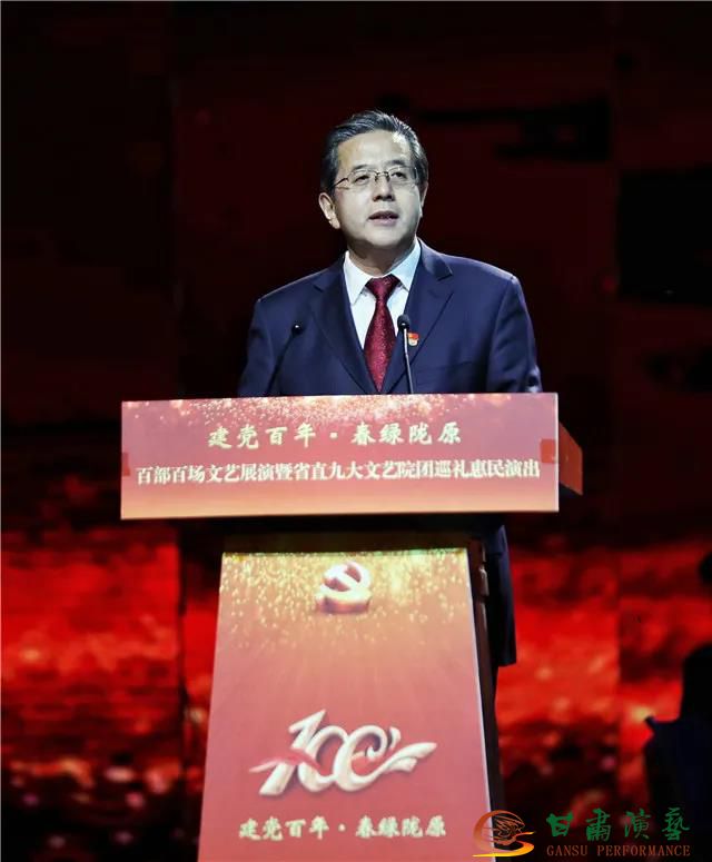 陳衛(wèi)中在啟動儀式致辭中指出,國有文藝院團是宣傳文化戰(zhàn)線的重要陣地,是繁榮發(fā)展社會主義文藝的中堅力量,是出精品、出人才、出效益的源頭所在。省直九大文藝院團是我省文藝事業(yè)的排頭兵和生力軍,有輝煌的奮斗歷史。長期以來,省直九大文藝院團始終堅持正確的政治方向,圍繞中心、服務(wù)大局,為弘揚優(yōu)秀傳統(tǒng)文化、深化人文交流與發(fā)展,推動文化旅游強省建設(shè)發(fā)揮了重要作用。實踐證明,省直九大文藝院團廣大文藝工作者是一支有信仰、有情懷、有擔(dān)當(dāng)?shù)年犖?。我們組織開展“建黨百年·春綠隴原”百部百場文藝展演暨省直九大文藝院團巡禮惠民演出,就是要借助中央關(guān)于深化國有文藝院團改革的東風(fēng),集中展示省直九大文藝院團的輝煌成就和嶄新面貌,以文藝的大繁榮促進文化的大發(fā)展,以文化的大發(fā)展助力經(jīng)濟的大提升。
