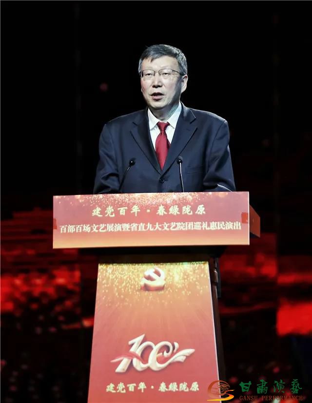 演出前,舉行了簡短而熱烈的“建黨百年·春綠隴原”百部百場文藝展演暨省直九大文藝院團巡禮惠民演出啟動儀式,省委常委、宣傳部部長王嘉毅宣布活動啟動,并與有關(guān)部門領(lǐng)導(dǎo)、省直九大文藝院團長共同為首場演出啟幕。“建黨百年·春綠隴原”百部百場文藝展演暨省直九大文藝院團巡禮惠民演出,由省委宣傳部、省文化和旅游廳主辦,甘肅演藝集團、蘭州大劇院協(xié)辦,省直九大文藝院團共同主辦。這是認真貫徹落實黨的十九屆五中全會和全國“兩會”精神,深入學(xué)習(xí)習(xí)近平總書記關(guān)于文藝工作的重要講話和指示精神,以巡禮惠民演出的形式展風(fēng)采、亮形象,全面拉開深化國有文藝院團改革大幕,以實際行動為慶祝建黨100周年獻禮的重要舉措。本次系列演出活動也是全省省直九大文藝院團首次聯(lián)袂開展系列演出。