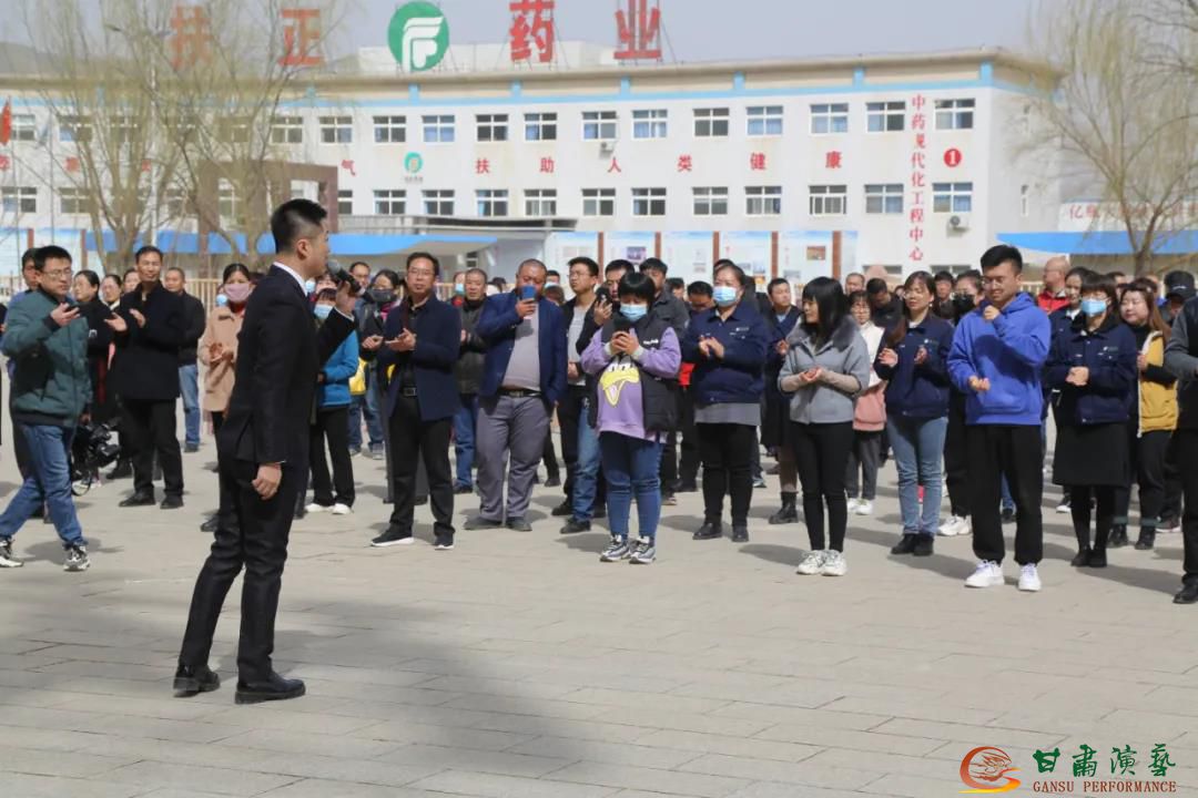 前往定西的演出小分隊到達(dá)定西后,立即來到首場演出現(xiàn)場——甘肅扶正藥業(yè)科技股份有限公司,全體演職人員齊心協(xié)力,立刻參與到演出場地布置、舞美道具及音響擺放等準(zhǔn)備工作中。隨后,一臺精心創(chuàng)排的綜藝節(jié)目,讓現(xiàn)場觀眾眼前一亮,中國經(jīng)典舞劇《絲路花雨》選段《金光千佛》蘊含傳統(tǒng)之美;表現(xiàn)民族團結(jié)的舞蹈《民族大聯(lián)歡》描畫出新時代老百姓的新生活;歌曲《幸福的時光》《平安中國》《少年》《不忘初心》等唱出了我們對祖國和黨的崇敬與祝福;薩克斯、笛子、板胡、京胡等樂器演奏更是讓觀眾大呼過癮。臺上,表演精彩,臺下,觀眾入迷 ,搭建在老百姓家門口的舞臺,將歡樂送到了老鄉(xiāng)身邊,將文化播種在了群眾心田。