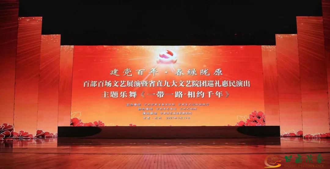 由中共甘肅省委宣傳部、省文化和旅游廳主辦,甘肅演藝集團(tuán)、蘭州大劇院協(xié)辦,省直九大文藝院團(tuán)共同承辦的“建黨百年·春綠隴原”百部百場文藝展演暨省直九大文藝院團(tuán)巡禮惠民演出于3月19日晚在蘭州音樂廳繼續(xù)精彩上演。甘肅演藝集團(tuán)歌舞劇院用一場精彩絕倫的主題樂舞《一帶一路·相約千年》帶領(lǐng)現(xiàn)場觀眾穿越千年歷史,感受中華文脈。