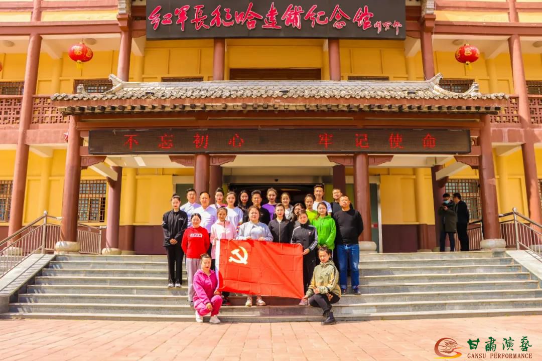 小分隊在繁忙的演出期間,仍然堅持學(xué)黨史、悟思想。大家把黨史學(xué)習(xí)融入演出,用作品謳歌黨的偉大成就、宣傳黨的為民政策,激勵和鼓舞著老鄉(xiāng)們擼起袖子加油干,繼續(xù)奮進新時代。與此同時,兩個小分隊還結(jié)合演出地實際情況開展了各具特色的學(xué)黨史活動。定西小分隊在元古堆村演出期間,聽著老鄉(xiāng)們激動的分享著習(xí)總書記2013年到村里視察時提出“咱們一塊兒努力,把日子越過越紅火”的重要指示精神,看著住進了整齊劃一新村安居房的幸福元古堆村鄉(xiāng)親們,砥礪奮進把幸福美好的日子“越過越紅火”的鄉(xiāng)親們,用脫貧奔小康的實際行動給演員們上了一堂生動的“黨課”,使大家內(nèi)心受到極大震撼,為表達對黨的無限忠誠,演員們與當(dāng)?shù)貜V大黨員干部群眾懷著對黨的無比崇敬之情,在元古堆村廣場面對黨旗莊嚴(yán)宣誓,錚錚誓言神圣而豪邁,進一步堅定了為民服務(wù)的初心,隨后大家在習(xí)總書記走過的地方共同演唱了一首《唱支山歌給黨聽》,用快閃的表演形式慶祝中國共產(chǎn)黨百年華誕,祝福偉大祖國繁榮富強!隴南小分隊組織全體演職人員赴宕昌縣哈達鋪紅軍長征紀(jì)念館開展“傳承紅色基因、踐行初心使命”主題活動,大家一起向革命先烈鞠躬致敬,深情表達對革命先烈的無比崇敬之情,并在臨時學(xué)習(xí)小組組長帶領(lǐng)下面對黨旗重溫入黨誓詞,再次讓每一位黨員從靈魂深處接受洗禮,隨后的參觀學(xué)習(xí)中,大家仔細聽取講解,認真駐足觀看,通過一幅幅珍貴的歷史圖片、文獻資料、革命先烈實物等,大家不僅更為直觀了解到老一輩革命先烈在哈達鋪留下的可歌可泣的動人故事,更接受了黨性和革命傳統(tǒng)再教育。