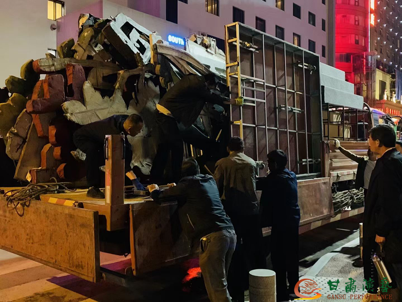 5月17日,劇院舞美燈光道具的相關(guān)工作人員,就已不辭辛勞,早早奔赴西安易俗大劇院,為劇院5月20日、21日在此地上演的大型秦腔傳統(tǒng)劇目《鎖麟囊》打好前站。劇院工作人員們充分發(fā)揚(yáng)“能吃苦、能戰(zhàn)斗、能奉獻(xiàn)”的拼搏精神,連夜將劇目的舞美道具從大車上卸下,直至深夜三點(diǎn)多大家還在進(jìn)行緊鑼密鼓的布置,為即將到來的盛大演出默默地付出著辛勞與汗水。