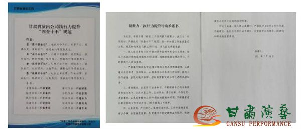 會后,公司還將與全體職工簽訂《凝聚力、執(zhí)行力提升行動承諾書》,印發(fā)《甘肅省演出公司執(zhí)行力提升“四查十不”規(guī)范》,以個人承諾、制度上墻等形式,推動各項工作任務落實落細。