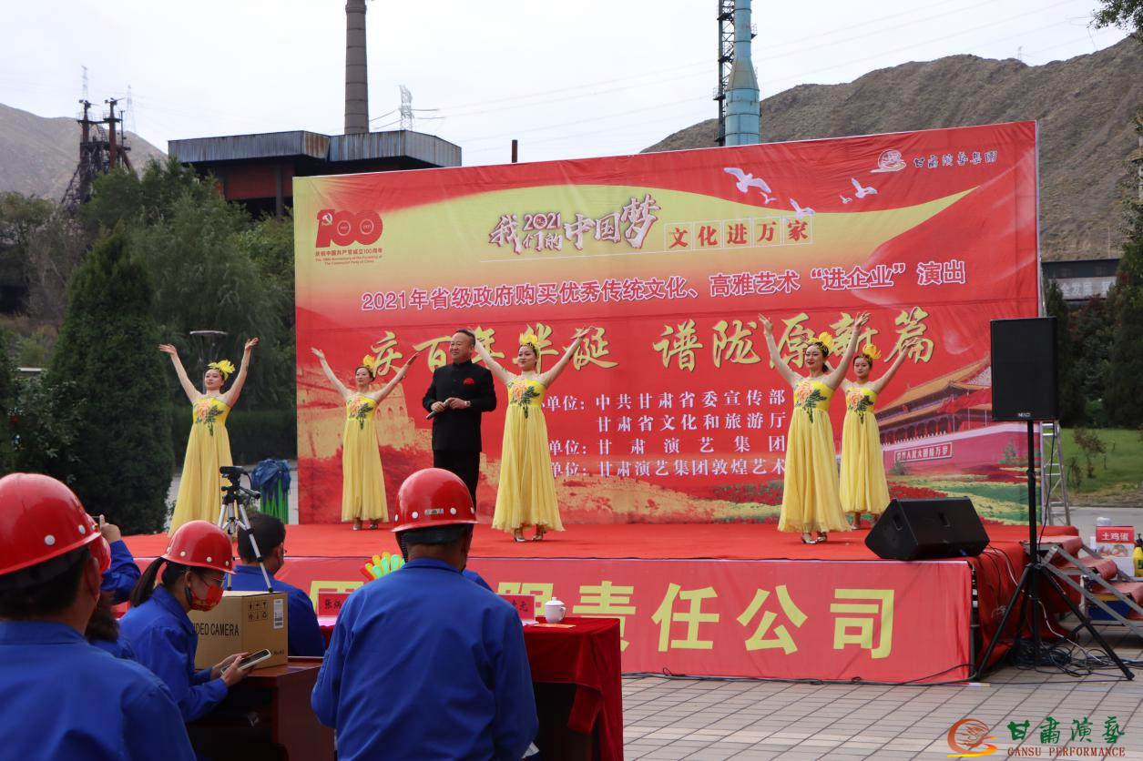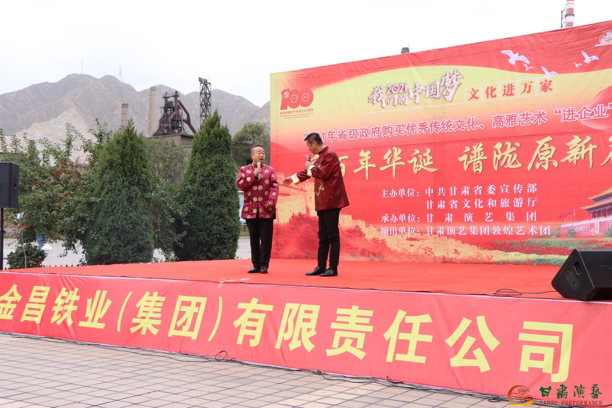 10月9日,由中共甘肅省委宣傳部組織、甘肅省文化和旅游廳主辦、甘肅演藝集團(tuán)承辦、甘肅演藝集團(tuán)敦煌藝術(shù)團(tuán)演出的”慶百年華誕 譜隴原新篇”——2021年省級(jí)政府購買優(yōu)秀傳統(tǒng)文化、高雅藝術(shù)“進(jìn)企業(yè)”演出在金泥集團(tuán)、金昌鐵業(yè)集團(tuán)同步上演。