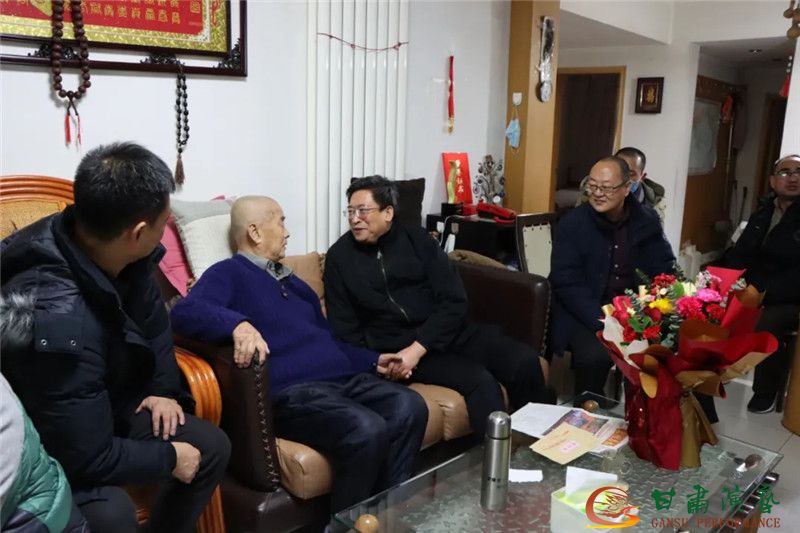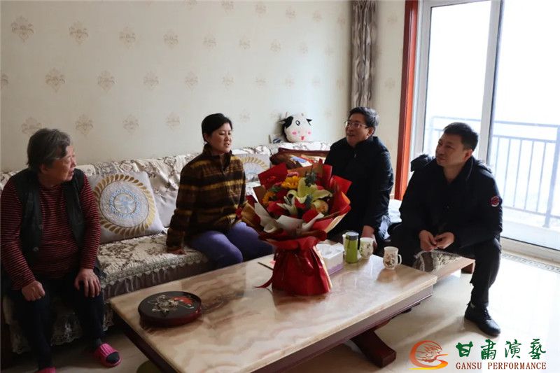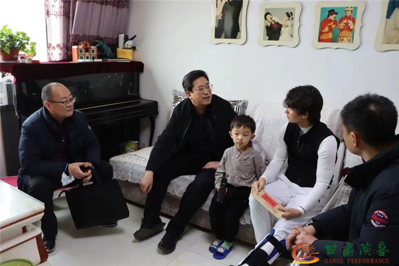 2022年1月26日下午,甘肅演藝集團黨委書記、董事長陳其銀,黨委辦公室主任胡慶昭、敦煌藝術團黨總支書記、團長吳雪林等一行 8人來到敦煌藝術團老黨員傅鐵,困難職工高冬梅,參加北?!逗=z首港》演藝項目受傷演員常亞輝家中慰問,并向他們送上新春祝福。