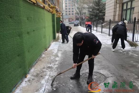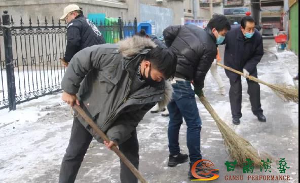 我為群眾辦實事——甘肅演藝集團舞美中心黨員干部職工清掃路面積雪保障居民安全出行