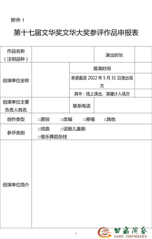 第十七屆文華獎(jiǎng)文華大獎(jiǎng)參評(píng)作品申報(bào)表