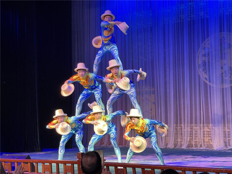 演出在舞蹈《星耀敦煌》中拉開序幕,緊接著女生獨唱《幸福中國一起走》、二胡重奏《高樓萬丈平地起》、相聲《說唱藝術(shù)》、七音樂隊《沒有共產(chǎn)黨就沒有新中國》、魔術(shù)《麗人行》、京劇《三家店》《智取威虎山》、小品《回家》、雜技《頂壇》《草帽》《鉆桶》、音樂快板《習總書記來咱布楞溝》等多種形式的節(jié)目繼而登場,讓觀眾目不暇接,最后歌伴舞《復興的力量》將演出氣氛推向高潮,演出在觀眾經(jīng)久不息的掌聲中圓滿謝幕。