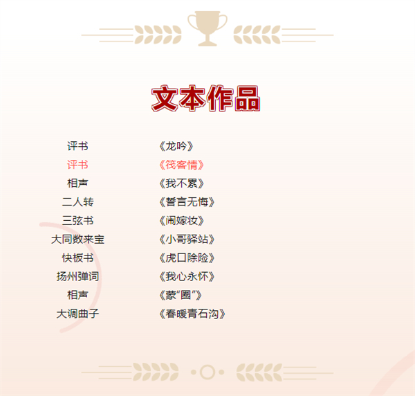 自2022年11月8日征集啟事發(fā)出以來,全國(guó)廣大文藝工作者積極響應(yīng),我團(tuán)文藝工作者踴躍投稿,共征集主題作品6部。最終經(jīng)過《曲藝》雜志社組織專家對(duì)全國(guó)報(bào)送的503個(gè)作品進(jìn)行了初審、復(fù)審、終審三輪遴選,我團(tuán)邱霞同志創(chuàng)作的評(píng)書《筏客情》在眾多文藝作品中脫穎而出,成功入選。