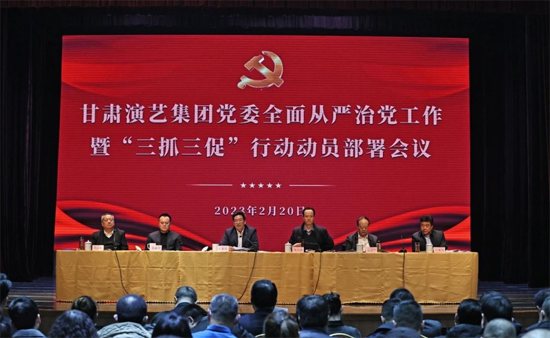2023年2月20日下午,甘肅演藝集團召開全面從嚴治黨工作暨“三抓三促”行動動員部署會。會議由集團黨委書記、董事長陳其銀主持。集團黨委委員、紀委書記、監(jiān)察專員張正權在會上作了題為《聚焦使命任務 忠誠履職盡責 以全面從嚴治黨新成效助力集團高質量發(fā)展》的黨風廉政建設工作報告。集團黨委班子成員、各部室及直屬各單位負責人、中層干部及職工代表共185人參加了會議。