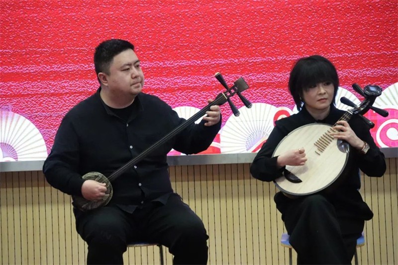 授牌儀式后敦煌藝術(shù)團(tuán)進(jìn)行了京劇表演,演出在韻味十足的京劇曲牌《夜深沉》中拉開了序幕。字正腔圓的現(xiàn)代京劇《紅燈記》選段、聲情并茂的傳統(tǒng)京劇《空城計(jì)》、惟妙惟肖的《賣水》、《石遷偷雞》跌宕起伏的劇情將現(xiàn)場(chǎng)氣氛推向高潮。舞臺(tái)上寬袍水袖,絲竹管弦,深深吸引了同學(xué)們的眼球,同學(xué)們情緒高漲,觀看得津津有味,贏得了雷鳴般的掌聲。