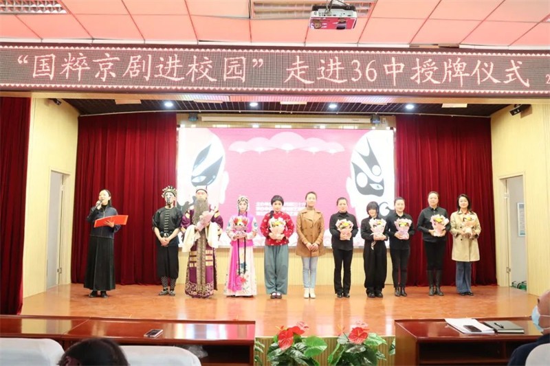 敦煌藝術(shù)團(tuán)黨總支書記、團(tuán)長(zhǎng)許蕊代表敦煌藝術(shù)團(tuán)向全體師生表示,戲曲是我國(guó)傳統(tǒng)文化的瑰寶,是無(wú)形的文化遺產(chǎn),戲曲以優(yōu)美動(dòng)聽的唱腔,豐富多彩的表演,維妙維俏的人物形象,跌宕起伏的故事情節(jié)打動(dòng)人心。三十六中與敦煌藝術(shù)團(tuán)共建“藝術(shù)教育實(shí)踐基地”,能夠培養(yǎng)學(xué)生對(duì)京劇藝術(shù)的興趣,了解京劇藝術(shù)知識(shí),希望同學(xué)們能夠愛上京劇,愛上我們的優(yōu)秀中華傳統(tǒng)文化。