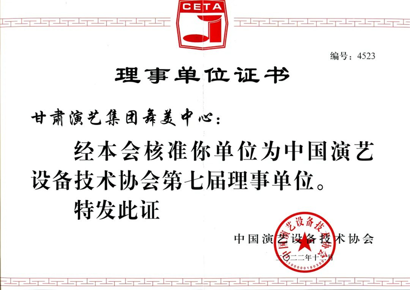 此次成功當(dāng)選,體現(xiàn)了中國演藝設(shè)備技術(shù)協(xié)會對舞美中心在甘肅演藝裝備行業(yè)領(lǐng)域的綜合實力、行業(yè)影響力的高度認(rèn)可,也是舞美中心促進甘肅演藝裝備和舞美事業(yè)發(fā)展的動力。