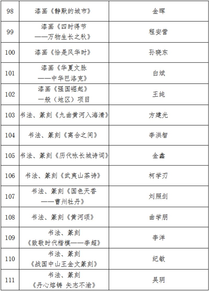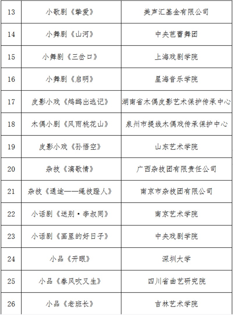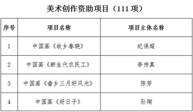 經(jīng)國(guó)家藝術(shù)基金專(zhuān)家嚴(yán)格評(píng)審,并報(bào)國(guó)家藝術(shù)基金理事會(huì)批準(zhǔn),現(xiàn)將《國(guó)家藝術(shù)基金(一般項(xiàng)目)2023年度資助項(xiàng)目名單》予以公示,公示時(shí)間為2023年3月3日至3月9日(公示7日)。如有異議,請(qǐng)以書(shū)面方式向中心反映,并提供必要的證據(jù)材料,以便核實(shí)查證。提出異議者須提供本人真實(shí)姓名、工作單位、聯(lián)系電話等有效聯(lián)系方式(中心將予以嚴(yán)格保密),凡匿名、冒名或超出期限的異議不予受理。