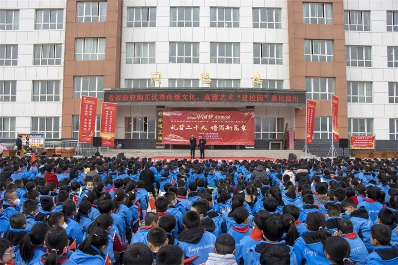 為深入學(xué)習(xí)宣傳貫徹黨的二十大精神,大力弘揚民族文化,傳承高雅藝術(shù),培養(yǎng)學(xué)生對優(yōu)秀傳統(tǒng)文化的興趣,增強學(xué)生藝術(shù)審美素養(yǎng)及民族自豪感,營造弘揚中華優(yōu)秀文化的校園氛圍,甘肅演藝集團敦煌藝術(shù)團演出的“我們的中國夢——文化進萬家”暨省級政府購買優(yōu)秀傳統(tǒng)文化、高雅藝術(shù)“進校園”惠民演出活動在蘭州市永登縣、榆中縣、皋蘭縣、紅古區(qū),隴南市康縣、成縣、西和縣開展。此次演出活動由中共甘肅省委宣傳部、甘肅省文化和旅游廳主辦,甘肅演藝集團承辦,甘肅演藝集團敦煌藝術(shù)團演出。