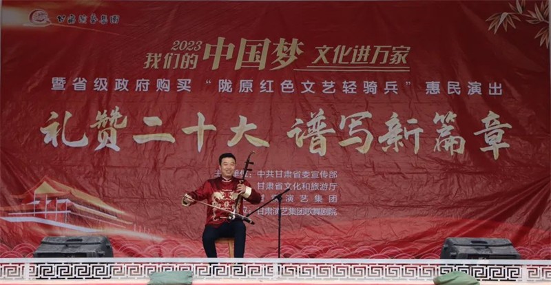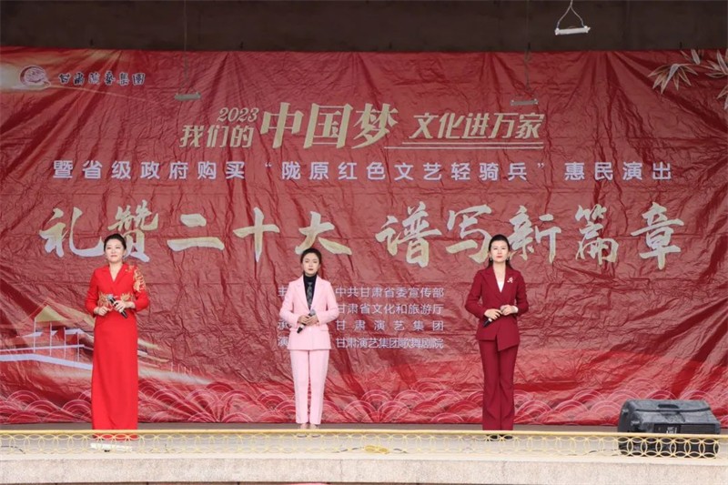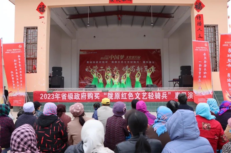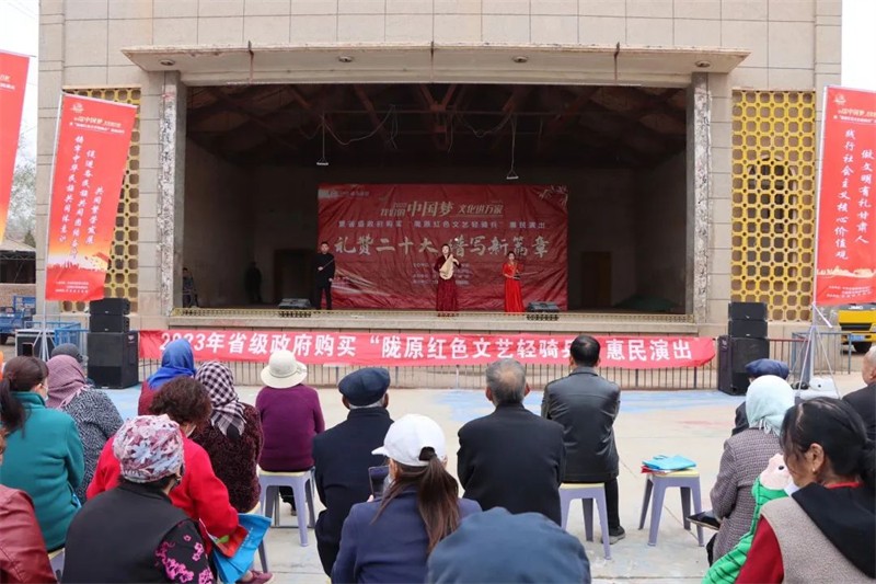 由中共甘肅省委宣傳部、甘肅省文化和旅游廳主辦,甘肅演藝集團(tuán)承辦,甘肅演藝集團(tuán)歌舞劇院演繹的2023年“我們的中國夢”——文化進(jìn)萬家暨隴原紅色文藝輕騎兵演出活動精彩繼續(xù)。4月2日至4日,三天六場演出,讓白銀市平川區(qū)寶積鎮(zhèn)、共和鎮(zhèn)、水泉鎮(zhèn),白銀市靖遠(yuǎn)縣東灣鎮(zhèn)楊柳村、大蘆鎮(zhèn)大蘆村、烏蘭鎮(zhèn)營房村的鄉(xiāng)親們沉浸式體驗了新時代文藝繁榮的累累碩果,一場場家門口的“文化盛宴”獲得了父老鄉(xiāng)親們的一致好評。