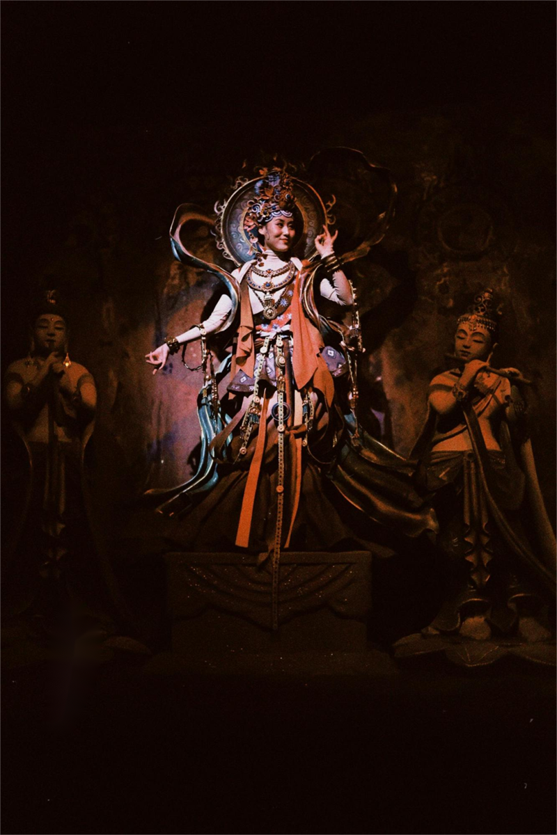 敦煌絢爛的上元燈會,讓白氏走進久違的人間至味,人們對幸福生活的渴求讓他心生慈悲。繁華散盡,面對壁畫,白氏陷入獨思之中,恍如融入其中。