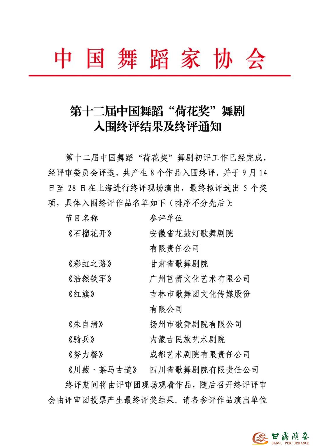 第十二屆中國舞蹈“荷花獎(jiǎng)”舞劇入圍終評(píng)結(jié)果及終評(píng)通知