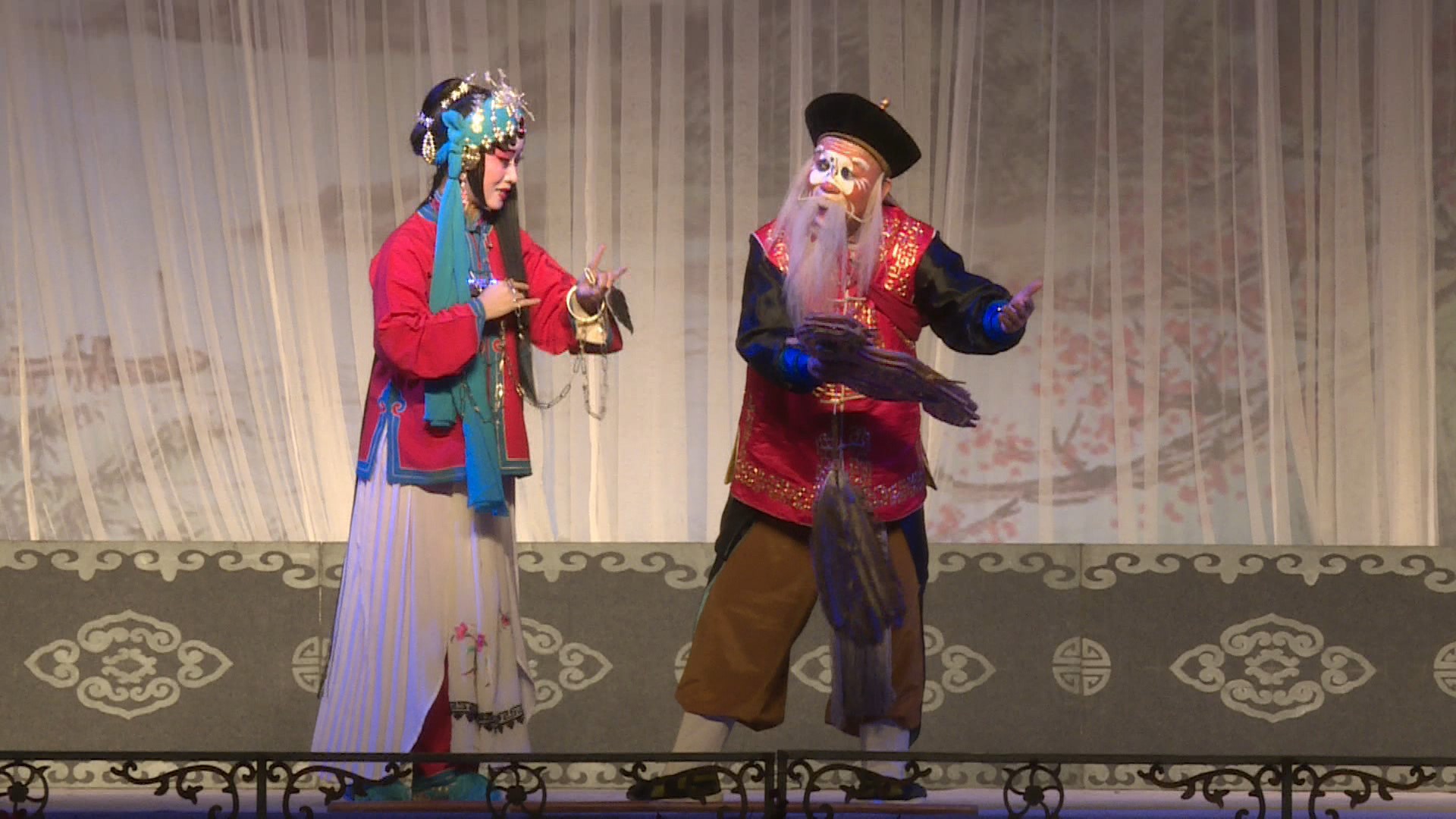 夜場(chǎng)演出的是秦腔傳統(tǒng)戲《玉堂春》,該劇主要講述了明代禮部尚書的三公子王景龍,與京城煙花名妓蘇三有情,因落難得蘇三贈(zèng)銀上京應(yīng)試,隨后蘇三蒙冤被定死罪,王景龍應(yīng)試高中八府巡按,調(diào)玉堂春一案復(fù)審,冤案始明,蘇三與王景龍遂得團(tuán)圓。其中《蘇三起解》《三堂會(huì)審》常單折演出,廣為流行。演出中,甘肅演藝集團(tuán)秦腔藝術(shù)劇院的藝術(shù)家們紛紛拿出自己的看家本領(lǐng)登臺(tái)演出,讓鄉(xiāng)親們?cè)诩议T口就能欣賞到高水平的文藝演出,過足戲癮,同時(shí),在濃厚的傳統(tǒng)文化氛圍中陶冶性情、歡度國慶。