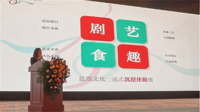 大會現(xiàn)場,樂動敦煌公司相關負責人就樂動敦煌-文旅產(chǎn)業(yè)綜合體項目進行推介,詳細介紹了規(guī)劃布局、投資建設情況、特色亮點、主要產(chǎn)品及合作模式。演員代表們表演了全球首部洞窟式沉浸體驗劇《樂動敦煌》的精彩片段,掀起現(xiàn)場活動高潮。
