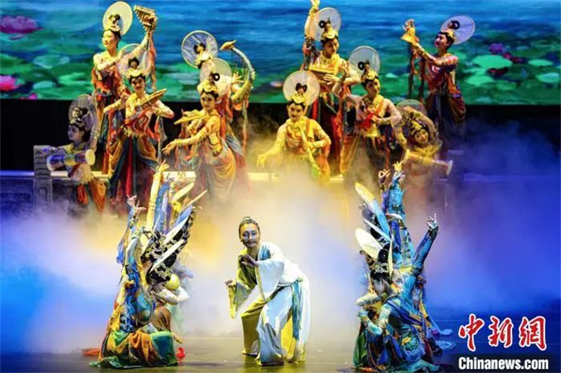 創(chuàng)排于1979年的舞劇《絲路花雨》開創(chuàng)了中國舞蹈史上一個(gè)全新舞蹈流派“敦煌舞派”,歷經(jīng)44載,常演常新,成為共建“一帶一路”的重要文化標(biāo)識(shí)和獨(dú)特文化名片。該劇題材取自敦煌壁畫和絲綢之路,以和平、友誼為主題,通過敦煌畫工神筆張及其女兒英娘與波斯商人患難與共的故事,“復(fù)活”了燦爛輝煌的敦煌壁畫,形象展示中國文化的博大精深,用舞臺(tái)藝術(shù)傳承發(fā)揚(yáng)中華民族優(yōu)秀傳統(tǒng)文化。
