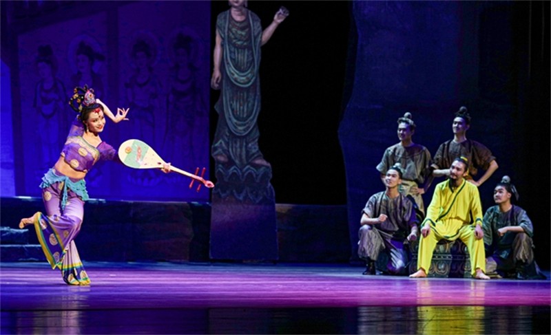 此舞只應(yīng)天上有,人間難得看幾回。舞劇《絲路花雨》是甘肅省歌舞劇院以舉世聞名的敦煌壁畫和絲綢之路為題材,以和平、友誼為主題,通過敦煌畫工“神筆張”和女兒“英娘”與波斯商人“依努斯”患難與共、生死相交的故事,以別具一格的藝術(shù)風(fēng)格,將瑰麗多彩的敦煌壁畫搬上舞臺(tái),藝術(shù)再現(xiàn)了敦煌文化的博大精深,贊美了勞動(dòng)人民創(chuàng)造敦煌文化的光輝形象,歌頌了古絲綢之路中外各族人民友好往來、民心相通的動(dòng)人故事。舞劇《絲路花雨》博采“一帶一路”沿線國(guó)家和地區(qū)民間歌舞,融合了中國(guó)古典舞、印度舞、黑巾舞、波斯馬鈴舞、波斯酒舞、土耳其舞、盤上舞、新疆舞等舞蹈藝術(shù)形式。