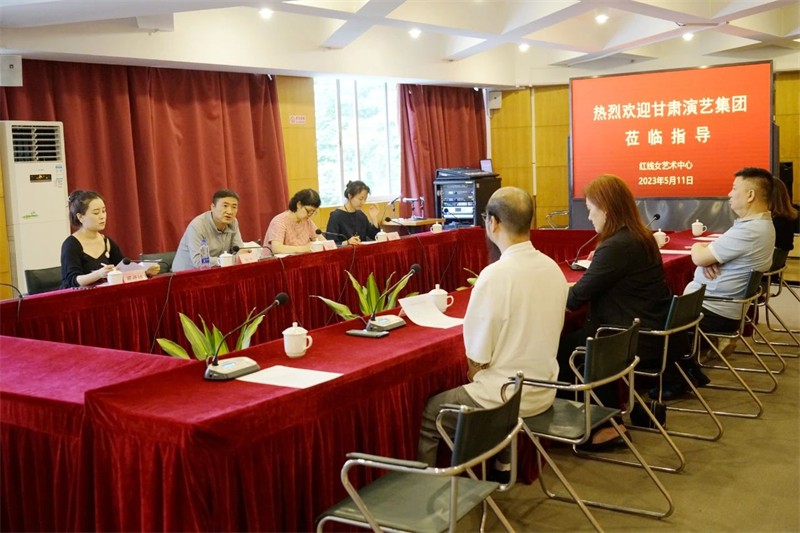 5月11日,甘肅演藝集團黨委委員、副總經理、藝術總監(jiān)劉寧,甘肅演藝集團創(chuàng)作策劃部部長張虹,甘肅演藝集團敦煌藝術團團長許蕊,甘肅演藝集團創(chuàng)作策劃部主辦周丹迪等一行到紅線女藝術中心參觀調研。