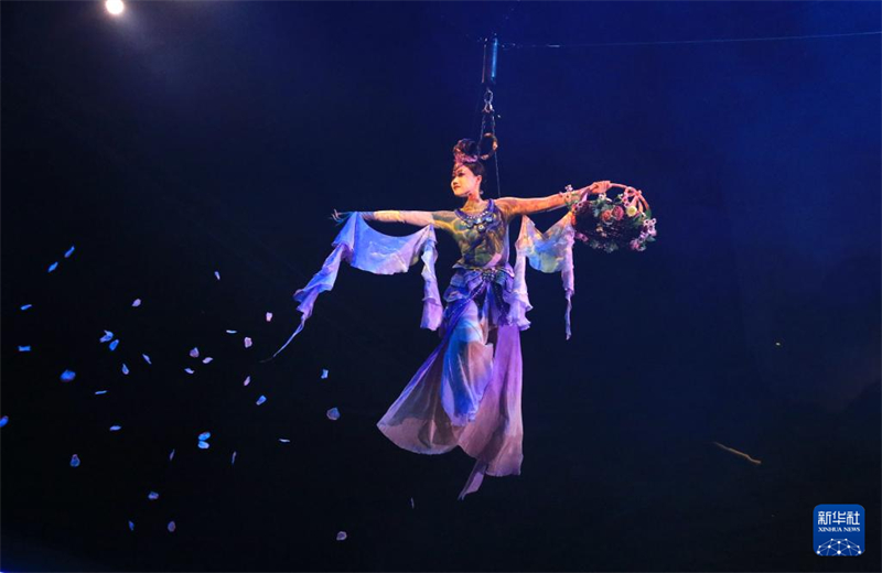 11月16日晚,演員在大型洞窟式沉浸體驗劇《樂動敦煌》中表演。新華社發(fā)(張曉亮 攝)