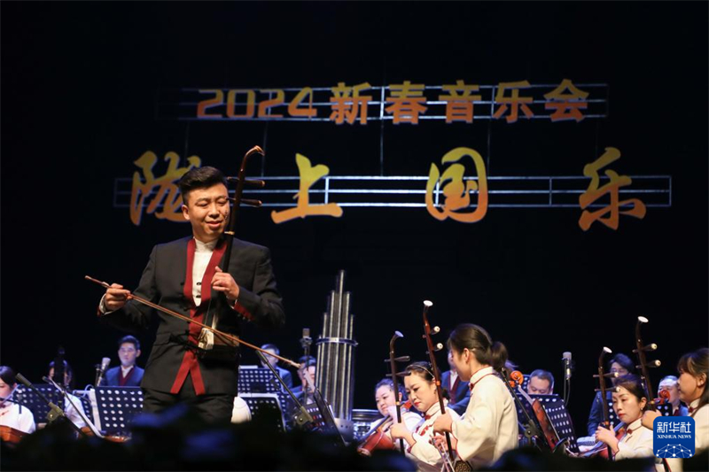 2月3日晚,在甘肅黃河劇院,演奏家在2024年新春音樂(lè)會(huì)《隴上國(guó)樂(lè)》中表演。新華社記者 馬希平 攝