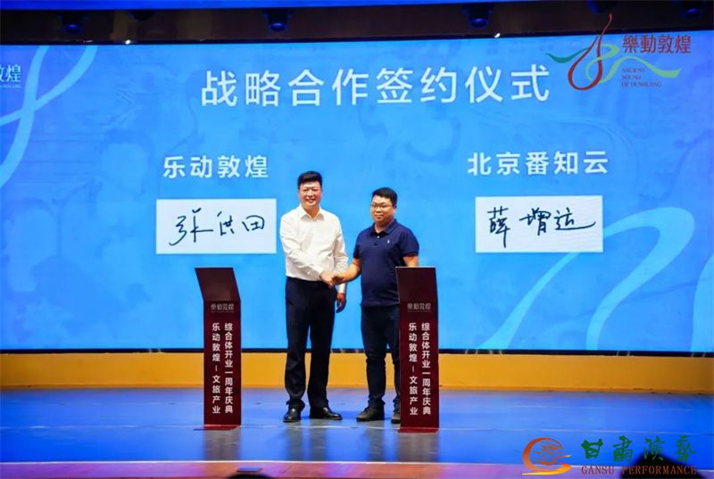 當(dāng)天下午,青島演藝集團與甘肅演藝集團進行戰(zhàn)略簽約,甘肅衛(wèi)視、北京番知云科技有限公司與樂動敦煌(敦煌)文化旅游產(chǎn)業(yè)發(fā)展有限公司進行戰(zhàn)略簽約,以此加強文旅行業(yè)各領(lǐng)域?qū)勇?lián)動,共同助推文旅行業(yè)高質(zhì)量發(fā)展。