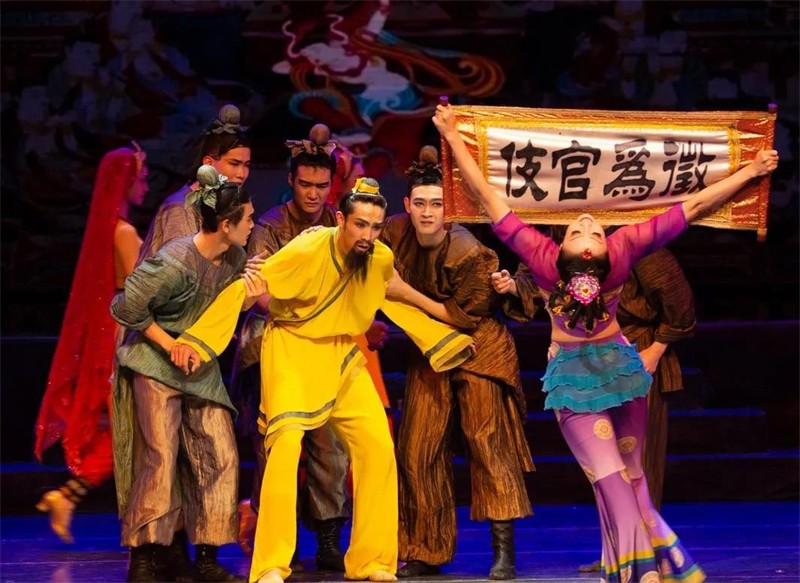 敦煌二十七國交誼會,節(jié)度使與各國來賓歡聚一堂。英娘化妝獻藝,陳訴了市令的罪狀。節(jié)度使憤然懲惡,剪除了絲綢路上的隱患。