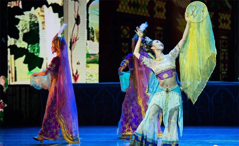 “絲路綿綿傳友誼,花雨繽紛舞彩虹?!?/p>