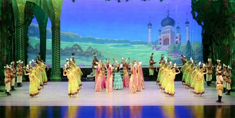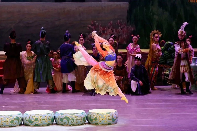 舞劇《絲路花雨》是以中國唐朝極盛時期為背景,取材于舉世聞名的絲綢之路和敦煌壁畫,集胡旋舞、霓裳羽衣舞以及琵琶舞、波斯舞、黑巾舞、酒舞、盤上舞等中國古典舞蹈于一體,別出心裁地將中國古典舞蹈與中國戲曲、西方芭蕾舞、現(xiàn)代舞等藝術(shù)文化元素融為一體,開創(chuàng)了“敦煌舞”這一全新的藝術(shù)流派,首演于1979年,曾先后訪問40多個國家和地區(qū),截止目前演出3899場,觀眾531萬余人次,被媒體贊譽為“活的敦煌壁畫,美的藝術(shù)享受”“此舞只應(yīng)天上有,人間難得看幾回”“中國民族舞劇的典范”。