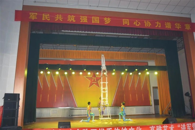 活動(dòng)首先在開(kāi)場(chǎng)舞《盛世花開(kāi)》中拉開(kāi)帷幕,隨后音樂(lè)快板《二十大精神放光芒》那振奮人心的詞曲,讓觀看演出的指戰(zhàn)官兵精神百倍;雜技《童趣——鉆桶》《翔——高椅》《頂壇》《荷花韻——頂技》通過(guò)一個(gè)個(gè)高、難、險(xiǎn)、美的技巧,引得現(xiàn)場(chǎng)官兵掌聲不斷;男女重唱《天籟之愛(ài)》、薩克斯獨(dú)奏《愛(ài)你在心口難開(kāi)》的時(shí)尚風(fēng),讓演出現(xiàn)場(chǎng)沉浸在青春律動(dòng)、朝氣蓬勃的氛圍里;相聲《傳統(tǒng)與現(xiàn)代》、互動(dòng)雜技《快樂(lè)廚師》引得現(xiàn)場(chǎng)的官兵歡笑聲、喝彩聲陣陣。最后,演出在嘹亮的軍歌《強(qiáng)軍戰(zhàn)歌》和《復(fù)興的力量》中圓滿(mǎn)落下帷幕。