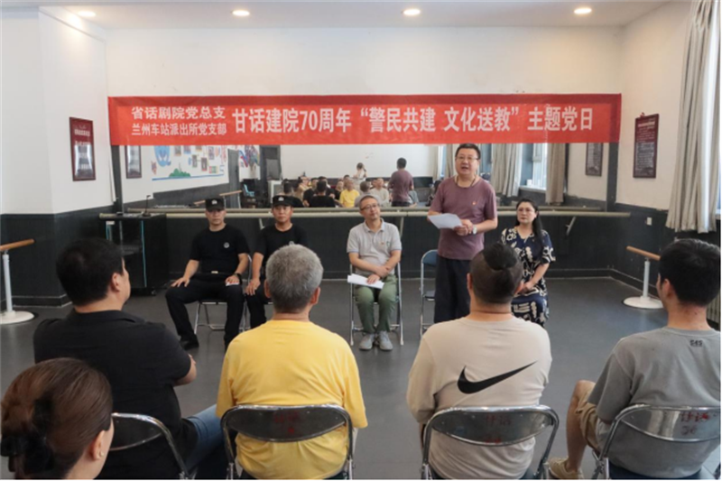 為慶祝甘肅省話劇院建院70周年,甘肅演藝集團話劇院(甘肅兒童劇院)策劃創(chuàng)排《薪火相傳七十年》紀念演出活動,回顧甘話70年的發(fā)展歷程和崢嶸歲月。為向在排練中辛勤付出的老黨員、老藝術家們致敬和為全力以赴積極工作在一線的演職人員們鼓勁加油,增強干部職工的凝聚力、向心力,以黨建為引領,發(fā)揚高度的主人翁精神, 8月3日,甘肅演藝集團話劇院(甘肅兒童劇院)黨總支和蘭州車站派出所黨支部聯(lián)合開展甘話建院70周年“警民共建 文化送教”主題黨日活動。