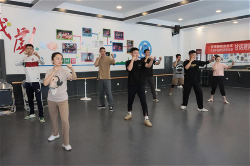 主題黨日活動中,授課教官一絲不茍,認真施教,全體演職人員精神振作,士氣高昂,整齊劃一,氣氛熱烈。教官授課內(nèi)容切合實際,深入淺出,通俗易懂,全體參訓演職人員認真聽講,反復練習所學動作,努力掌握每一個動作要領,確保了訓練的實效性。同時,還邀請?zhí)m州車站派出所民警現(xiàn)場觀看了紀念回顧展演話劇片段的排演。